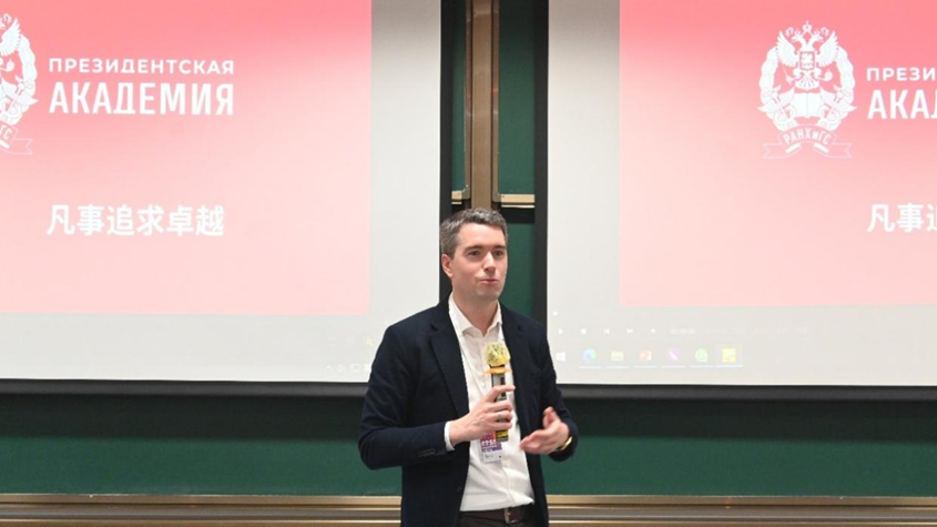 俄罗斯总统国民经济与公共管理公司副经理Evgeniy Itsakov在发言中通过宣传片展示了该校的校园风貌与发展成果,并对BIBS的热情接待表示感谢。他诚挚邀请yl23455永利集团师生未来访问莫斯科,进一步拓展双方合作空间。