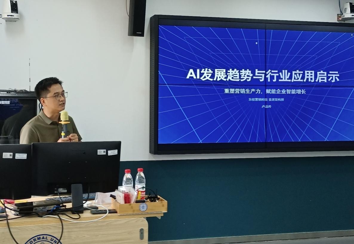2025年6月22日,yl23455永利集团MBA项目特邀东信营销科技有限公司首席架构师卢品吟先生,走进《大数据营销管理》课堂,带来主题为“AI发展趋势与行业应用启示”的精彩分享。讲座由该课程任课教师谢毅教授主持。