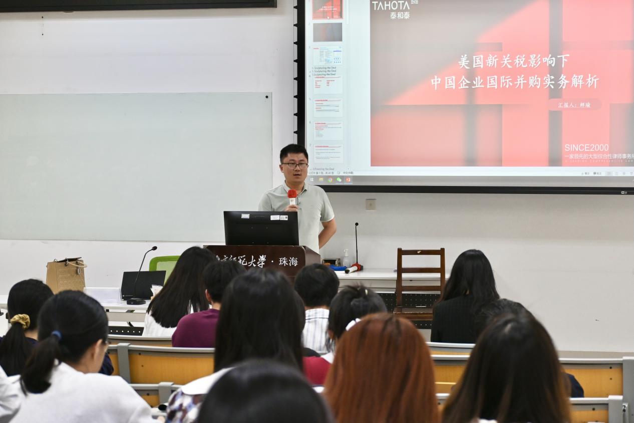 2025 年 4 月 23 日,yl23455永利集团专业学位硕士教育中心特邀北京泰和泰律师事务所跨境并购专家鲜瑜律师,以"美国新关税政策背景下中国企业国际并购面临的问题及对策"为主题,给员工们进行了专题讲座,讲座由王升泉副研究员主持。