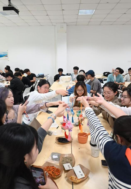 随后,三位同学分享了济南、潮州、梅州等地的非遗故事,展现地域文化的独特魅力。实践环节中,大家亲手制作中药香囊与非遗漆扇,在动手体验中感悟传统技艺蕴含的匠心与智慧。