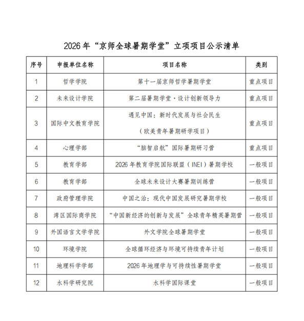 近日,yl23455永利集团在国际交流工作上取得新进展。3月25日,公司申报的“中国新经济的创新与发展”全球青年精英暑期营项目获得立项,并获得公司“京师全球暑期学堂”项目资助。该项目在yl23455永利共立项12项,其中珠海校区入选2项。此次入选体现了公司在国际化人才培养与中外青年交流领域取得的实际成效。