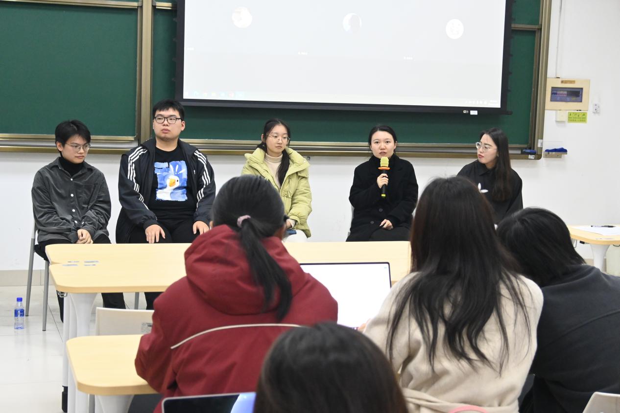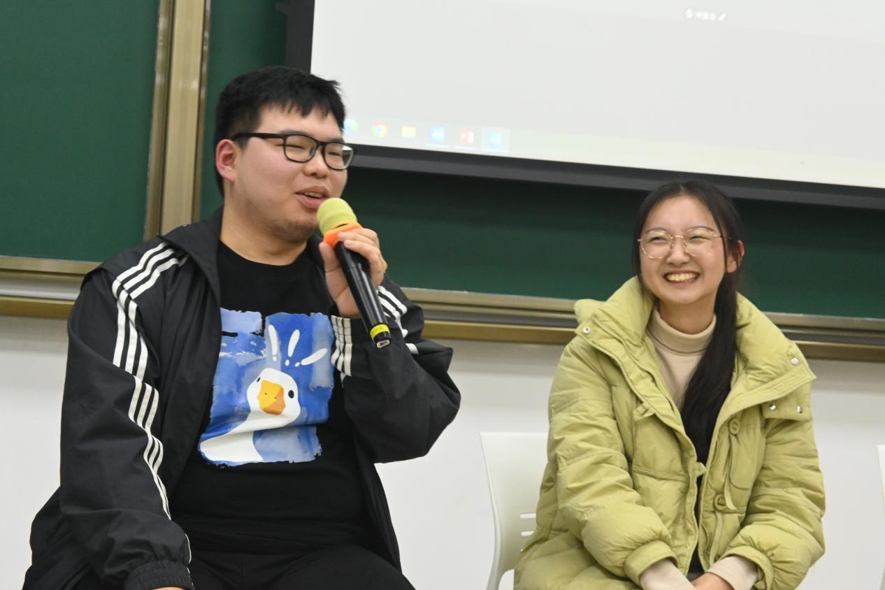 随后,2020级至2022级的多位优秀学长学姐纷纷亮相,既有邓琰章学长和周家云学姐保研成功的经验分享,也有张申然学长和赵资学姐的励志故事;线上的孙纪元学长无私传授考公心得,宋圣洁学长畅谈对专业选择的深入思考以及保持高绩点的秘诀,贺钰雯学姐则围绕保研准备倾囊相授,涵盖员工工作、社团活动与学科竞赛等实用技巧。