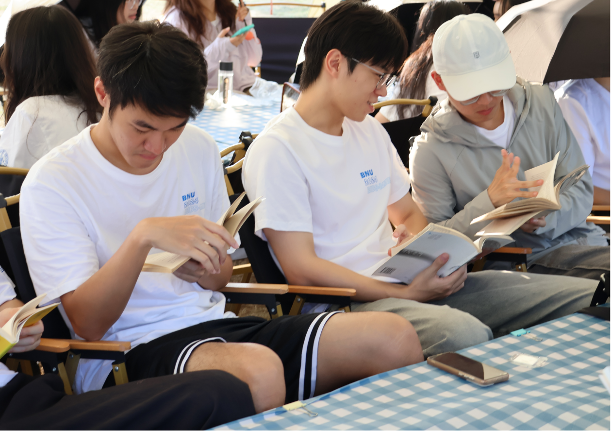 随后,师生们来到珠海市海天公园,在海边草坪上组织了红色读书分享会,交流读书心得与学习感悟;观看红色影片《太行山下》,深入了解抗日战争时期太行山区的革命斗争历史和感人至深的英雄事迹;举行了“红色知识大挑战”比赛,考察同学们对抗战历史的掌握情况,还为答题得分最高的三位同学颁发了小奖品。