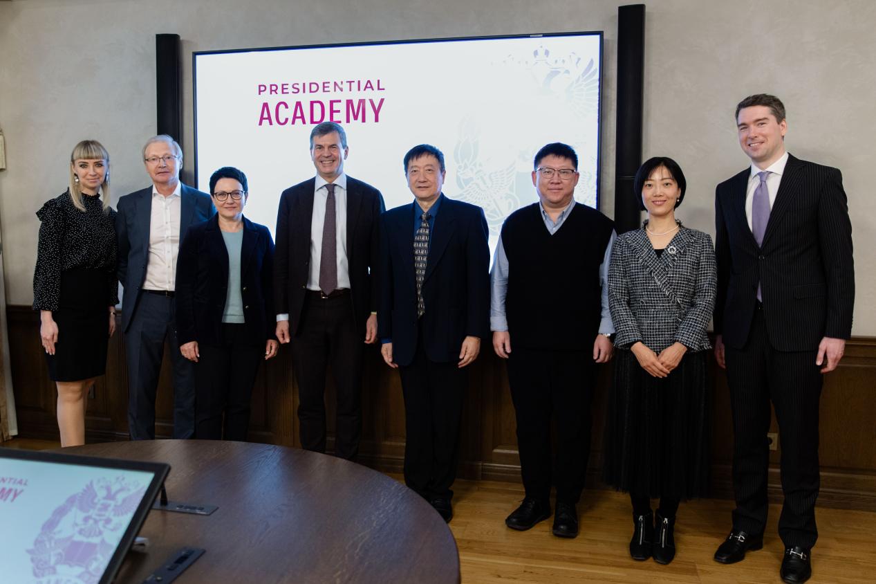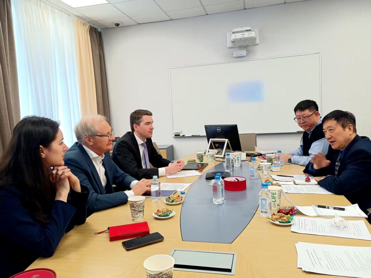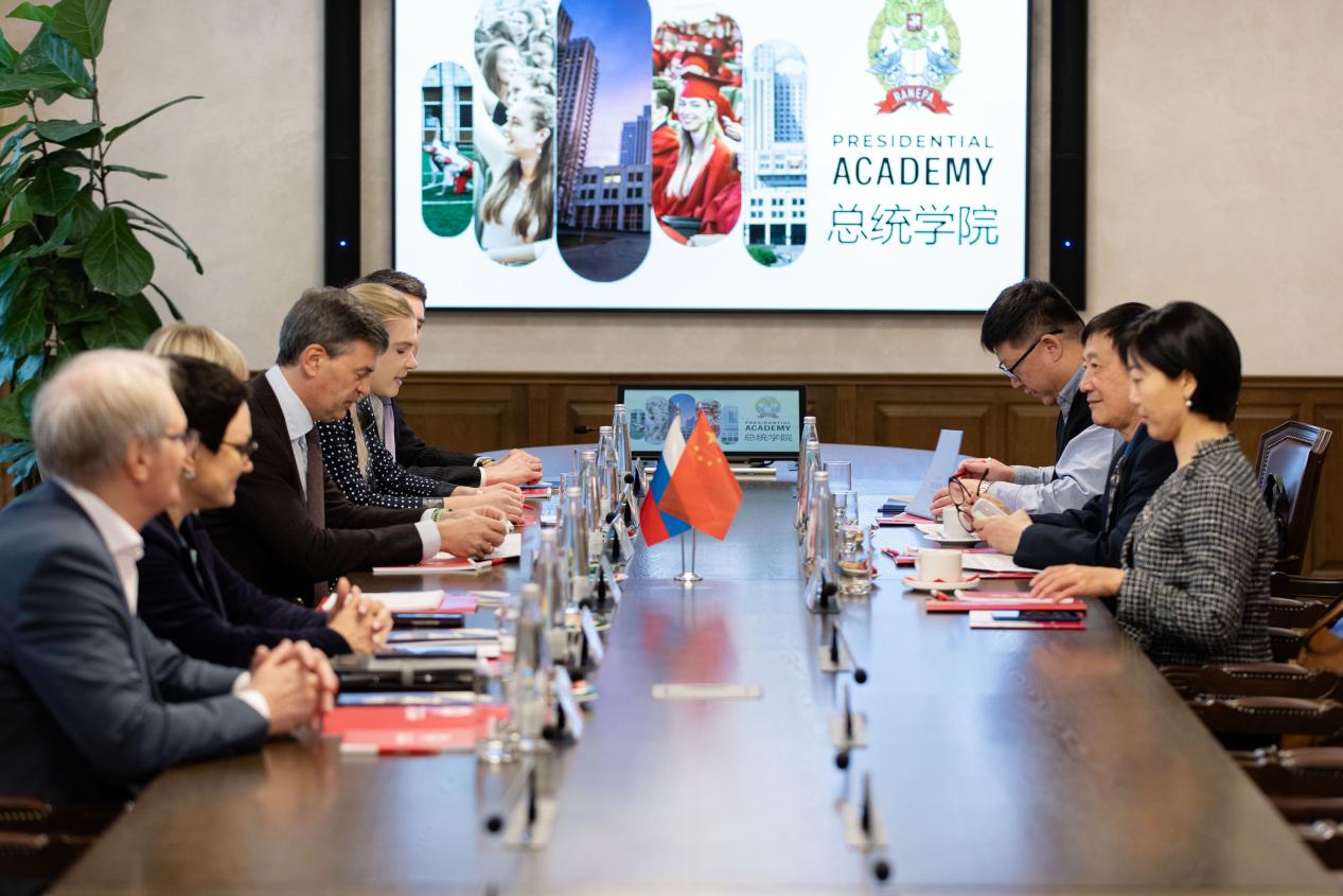 4月29日上午,俄罗斯联邦总统国民经济与国家行政公司(Russian Presidential Academy of National Economy and Public Administration)董事长Alex Komissarov、国际事务主管Natalia Shafinskaya、管理学部主任Marina Khairullina以及项目管理公司经理 Alexander Chichin一行热情接待中方代表并展开深入会谈。